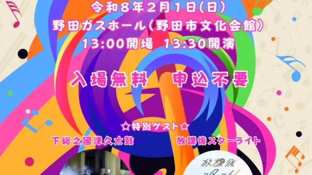 この度放課後スターライトは、野田市が主催する「のだ市民のど自慢」に特別ゲストとして出演することになりました!ライブ概要場所:野田ガスホール(野田市文化会館)開催日: 2月1日(日)開場: 13:00~開演: 13:30~放課後スターライト ...